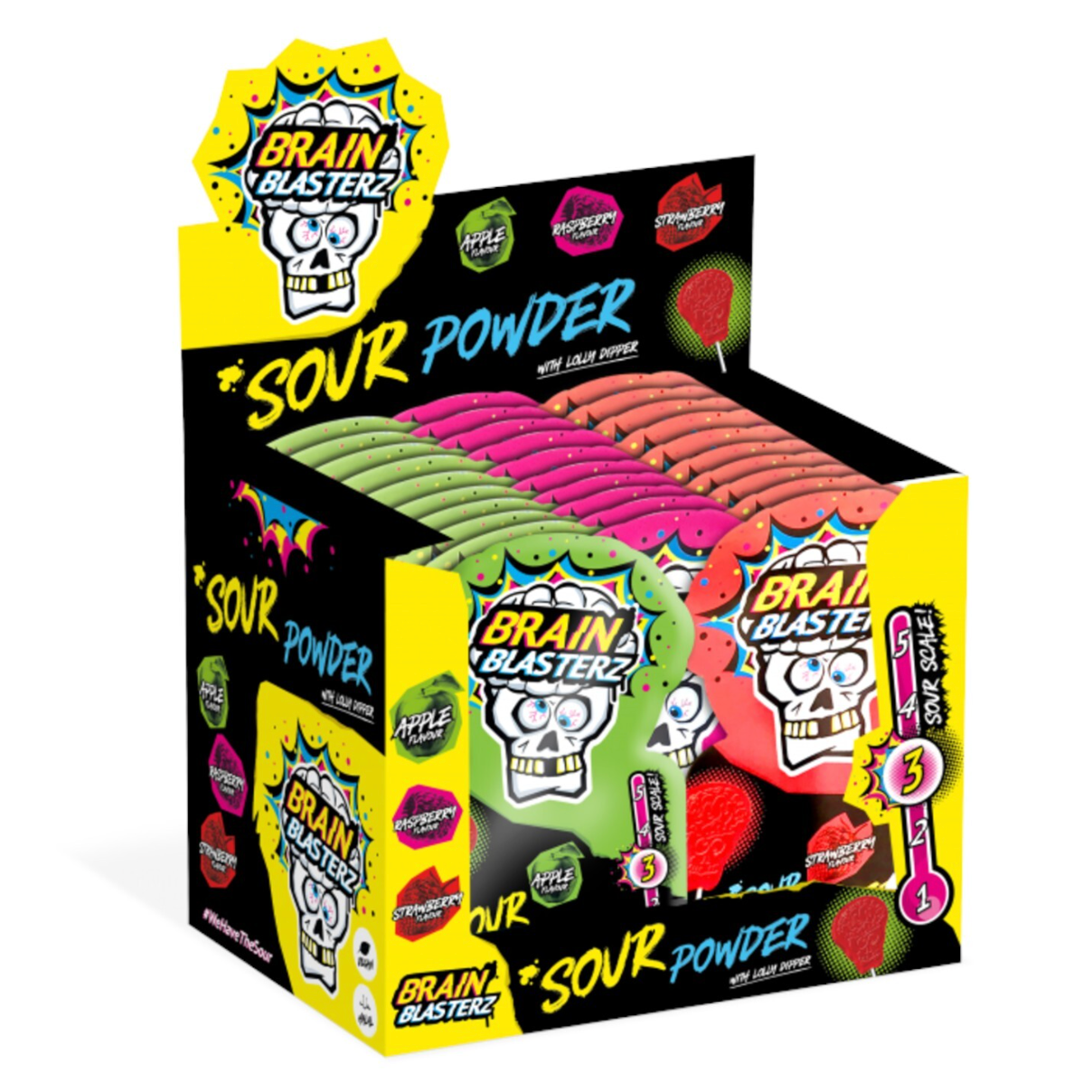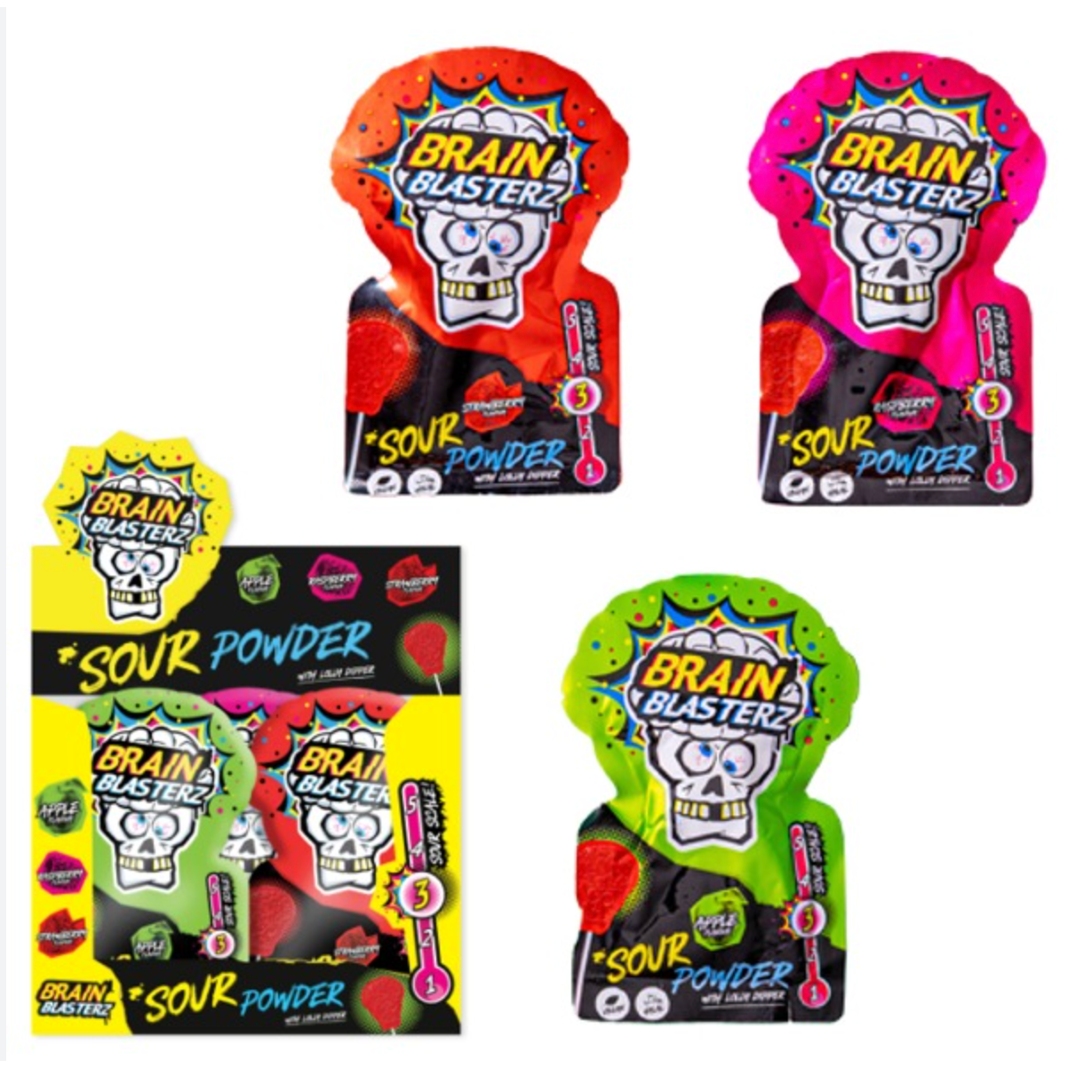 Brain Blasterz Sour Powder 30 x 10g with Lolly Dipper Kids Party Bag Fillers