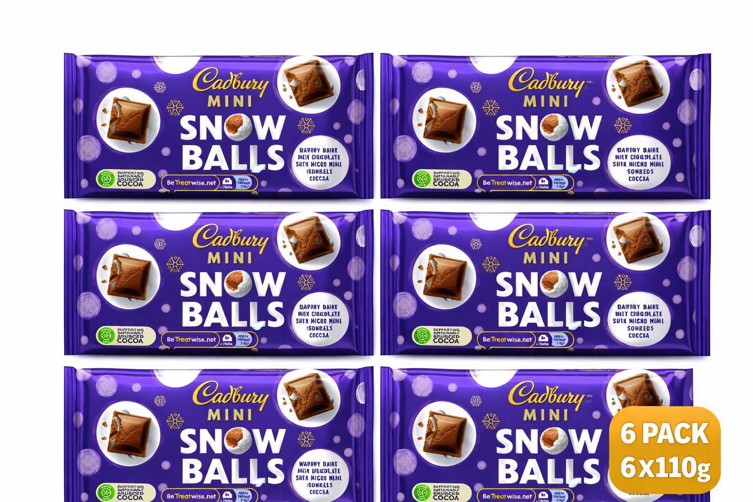 Cadbury Dairy Milk Mini Snow Balls Chocolate Bar 110g x 6