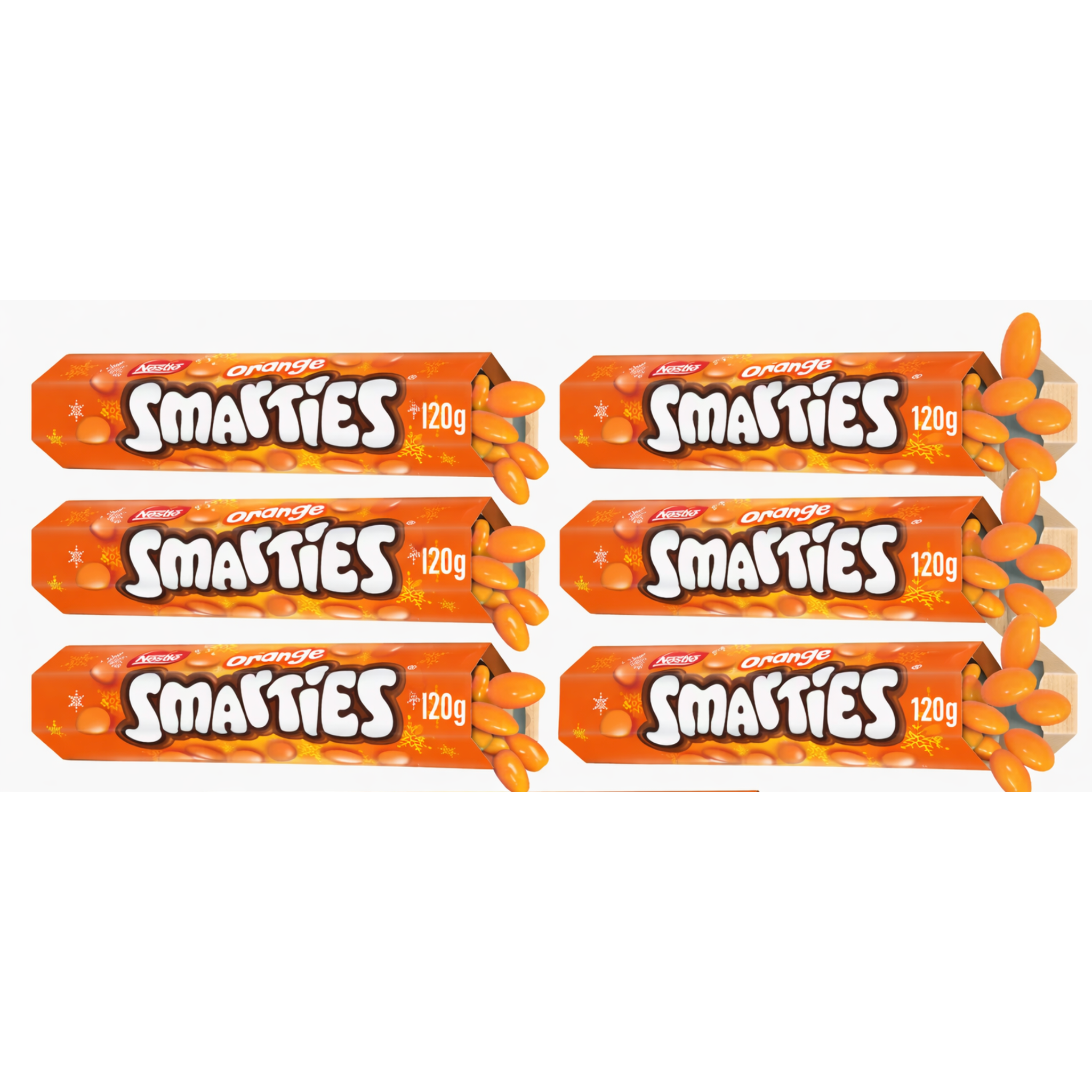 Enjoy a colourful twist on a classic with Smarties Orange Milk Chocolate Giant Tubes. This 6-pack of 120g tubes is filled with delicious orange-flavoured milk chocolate pieces, each coated in a crisp, vibrant shell.